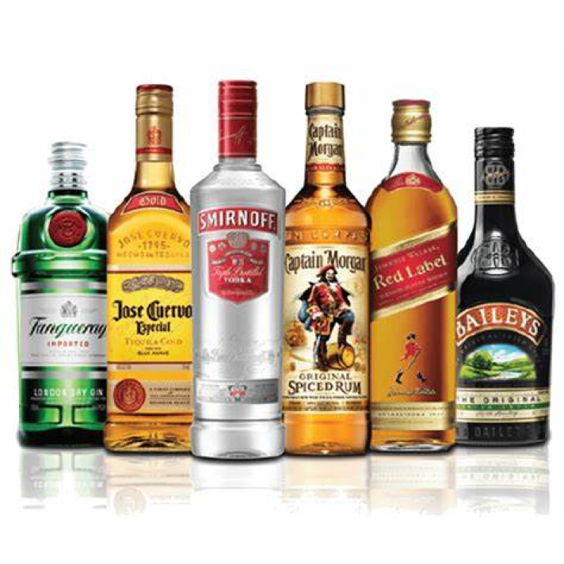 Vodka, Rum, Gin, Whiskey (per bottle)